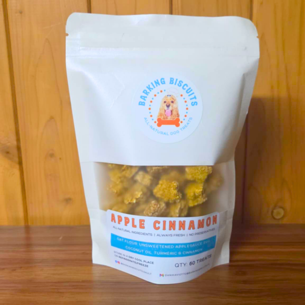 Apple Cinnamon: Oat Flour, Unsweetened Applesauce, Egg, Cinnamon, Coconut Oil & Turmeric