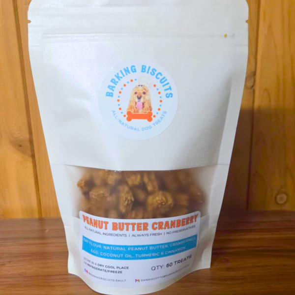 Peanut Butter Cranberry: Oat Flour, Natural Peanut Butter, Cranberries, Egg, Coconut Oil, Cinnamon & Turmeric